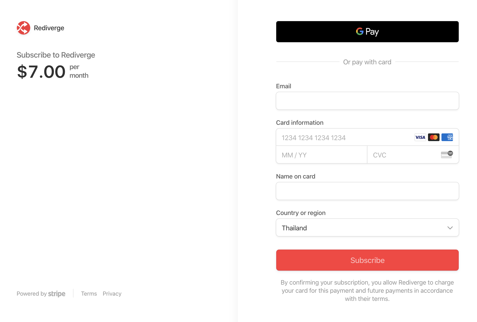Great news! Your readers can now support your creative work using Google Pay to subscribe to one of your premium plans. All Ghost members sites now have Google Pay support via our integration with Stripe.