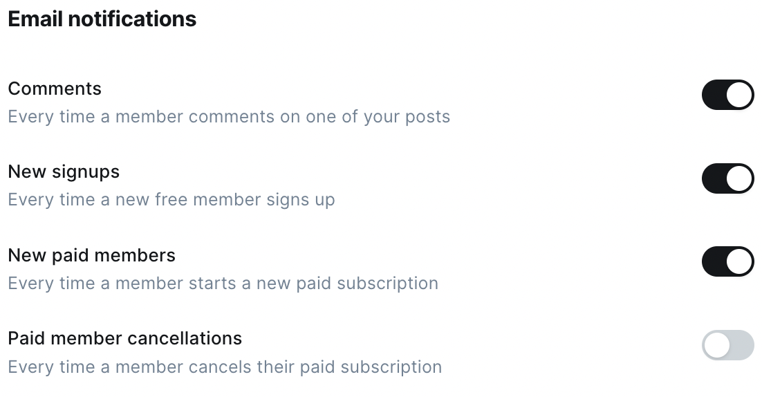 Ever wished you could get a quick email alert to let you know when you have a new signup, paid subscription, or cancellation? Now you can, with email notifications built directly into Ghost.
