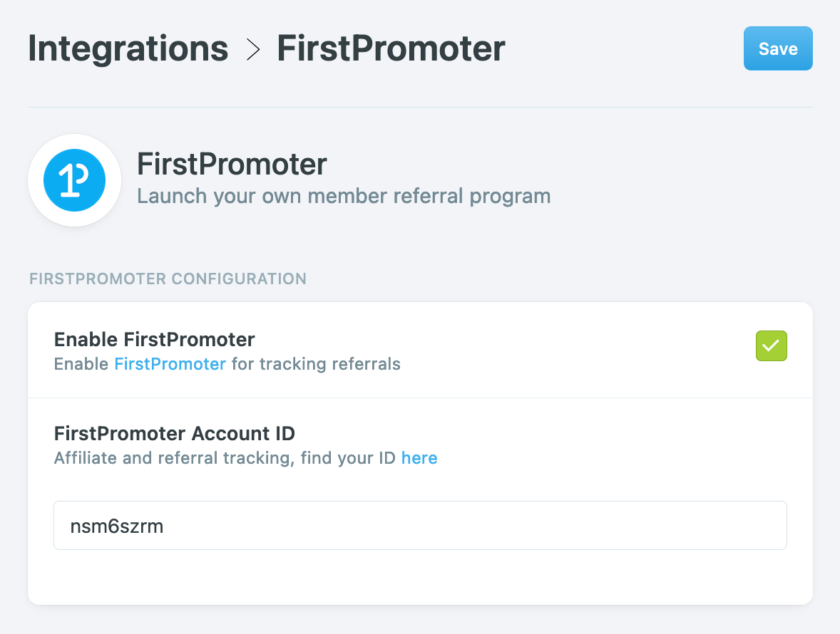 Now, all you need to do is grab your FirstPromoter ID and paste it into the Integration inside Ghost Admin: