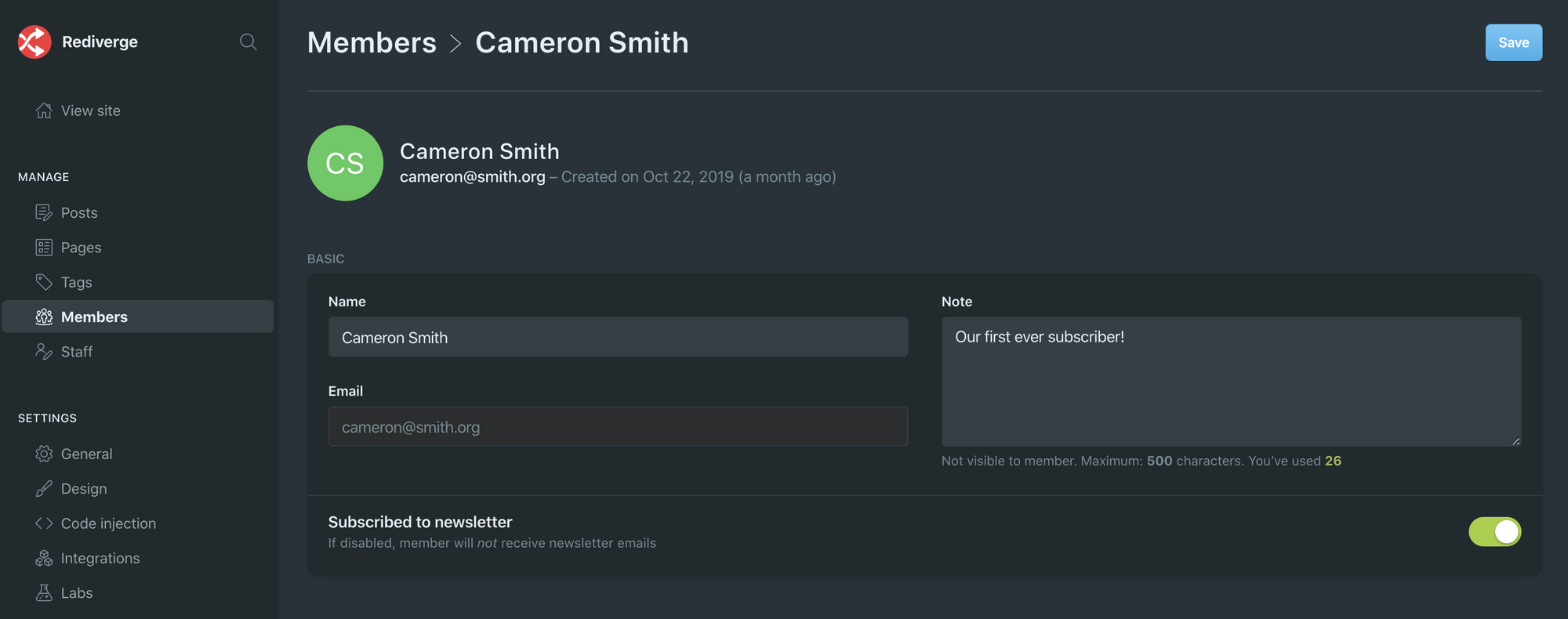 We've been testing this feature in production for about a month now, and we're really excited about how simple and fun it is to be able to just write and send a post to members from directly inside Ghost.