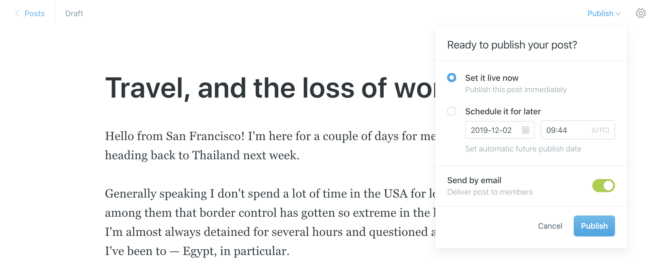 Now when you go to publish a post, you can also deliver it directly to your members via email.
