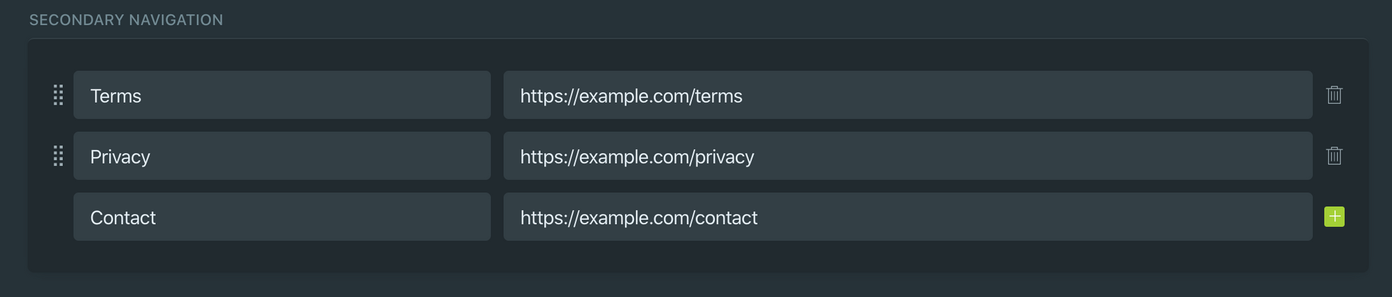 Ghost Admin now supports secondary navigation, making it fast and simple to add or update links to your site's navigation menus. Head to the Design settings page in Ghost Admin to add your secondary navigation links: