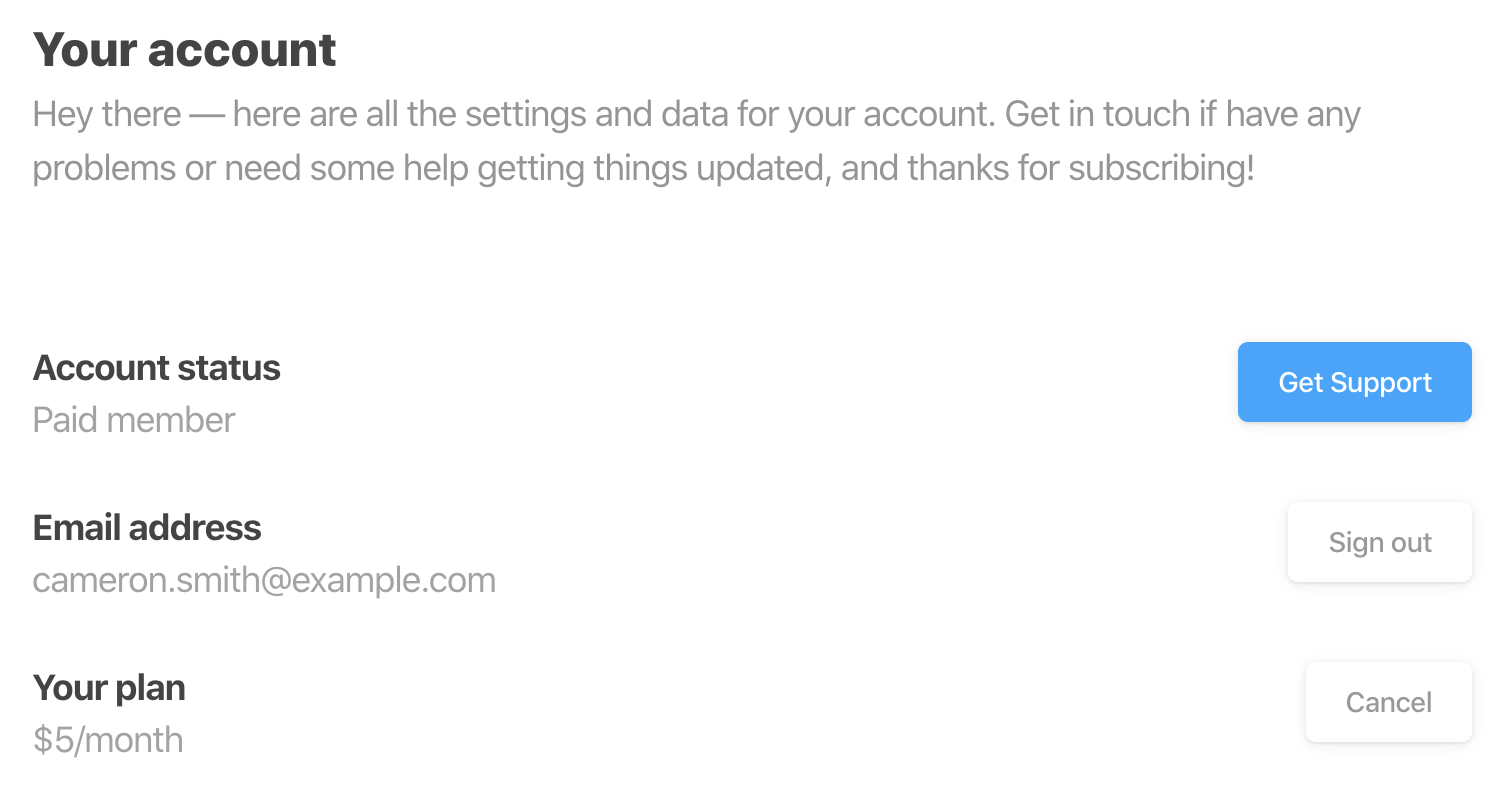 Your members can now self-manage subscriptions for any membership publication built with Ghost, with a new helper to cancel or continue billing for any plan.