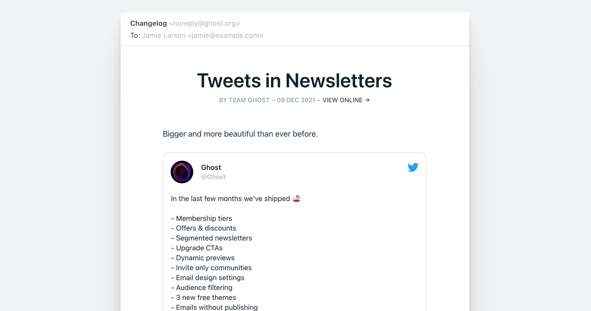 Now, Tweets in newsletters are automatically rendered to look how you would expect; both on the web as well as in email clients.