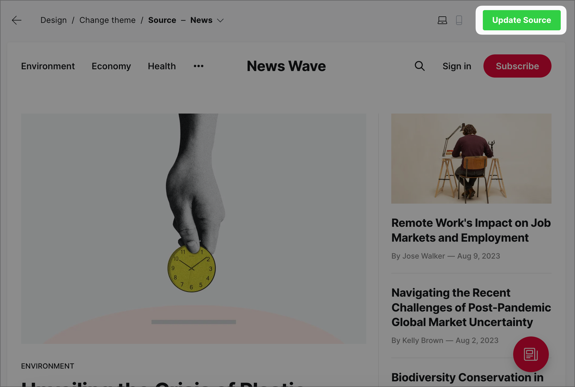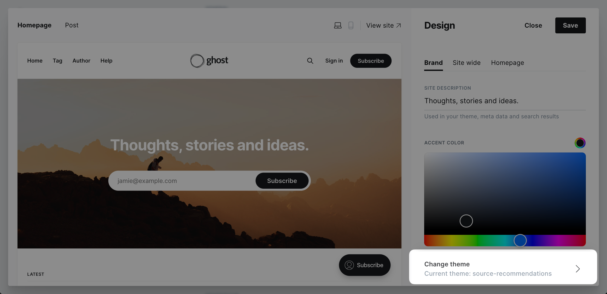 All of Ghost’s official themes can be updated to the latest version in Ghost Admin in just a few clicks, allowing you to access new features and theme improvements.