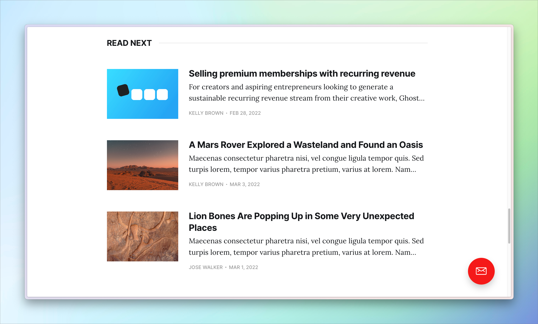 Come share how you built your read-next section or get help from the community on the official Ghost Forum. And, if you liked this tutorial and are looking for something to read next, see our Keep on learning section below or subscribe to the Build with Ghost newsletter.